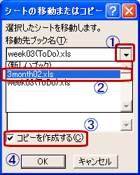 - 貼り付け先の書式を選択します。この例ではweek03(ToDo).xlsの書式を3month02.xlsにコピーします。